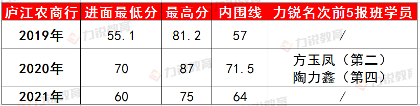 进入安徽农商行是很多考生的梦想,力锐教育整理全省各法人行近三年社会招聘报名条件现将庐江农商行2021年、2020年、2019年招聘情况发布如下: