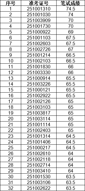 根据《东至农村商业银行2025年社会招聘简章》,按笔试成绩从高到低排序,现公布入围面试人员名单: