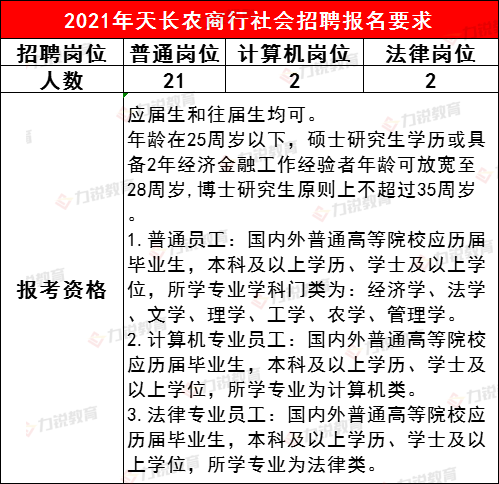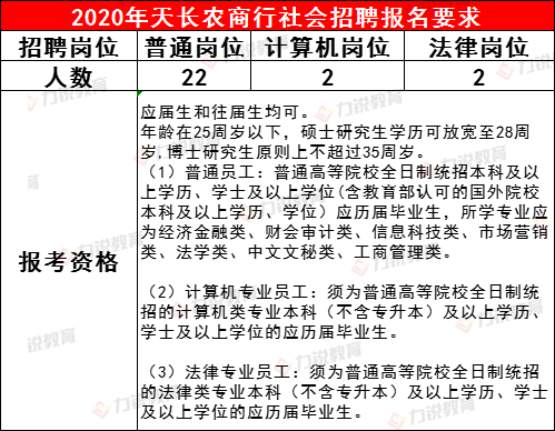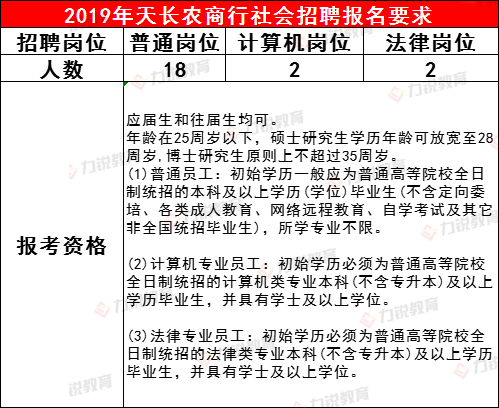进入安徽农商行是很多考生的梦想,力锐教育整理全省各法人行近三年社会招聘报名条件。现将天长农商行招聘情况发布如下: