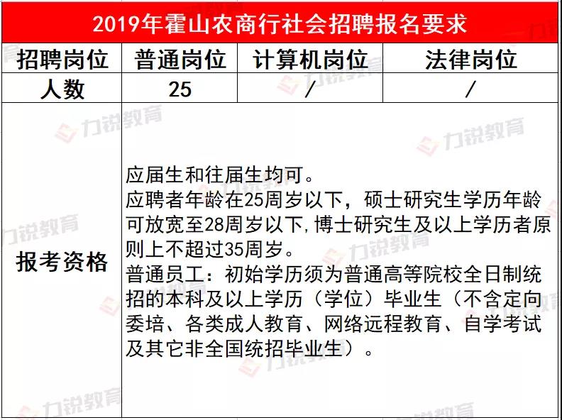 进入安徽农商行是很多考生的梦想,力锐教育整理全省各法人行近三年社会招聘报名条件。现将霍山农商行招聘情况发布如下: